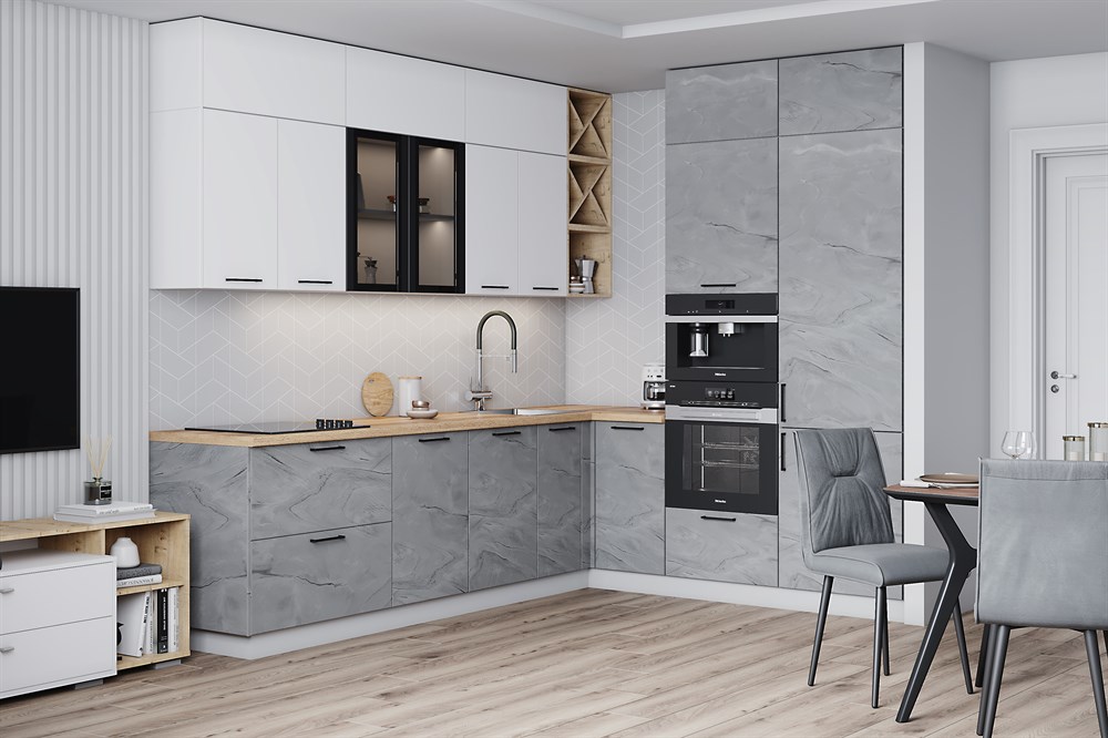 Кухонный гарнитур не комплектуется: столешницей, стеновой панелью, сушкой, бытовой техникой, ручками (заказываются отдельно) и мойкой.