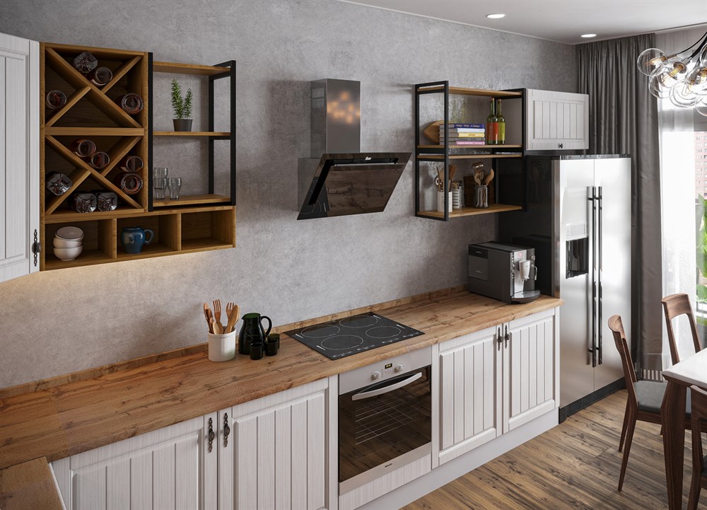 Кухонный гарнитур не комплектуется: столешницей, стеновой панелью, сушкой, бытовой техникой и мойкой.
