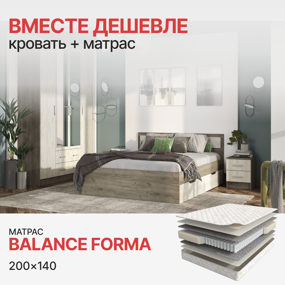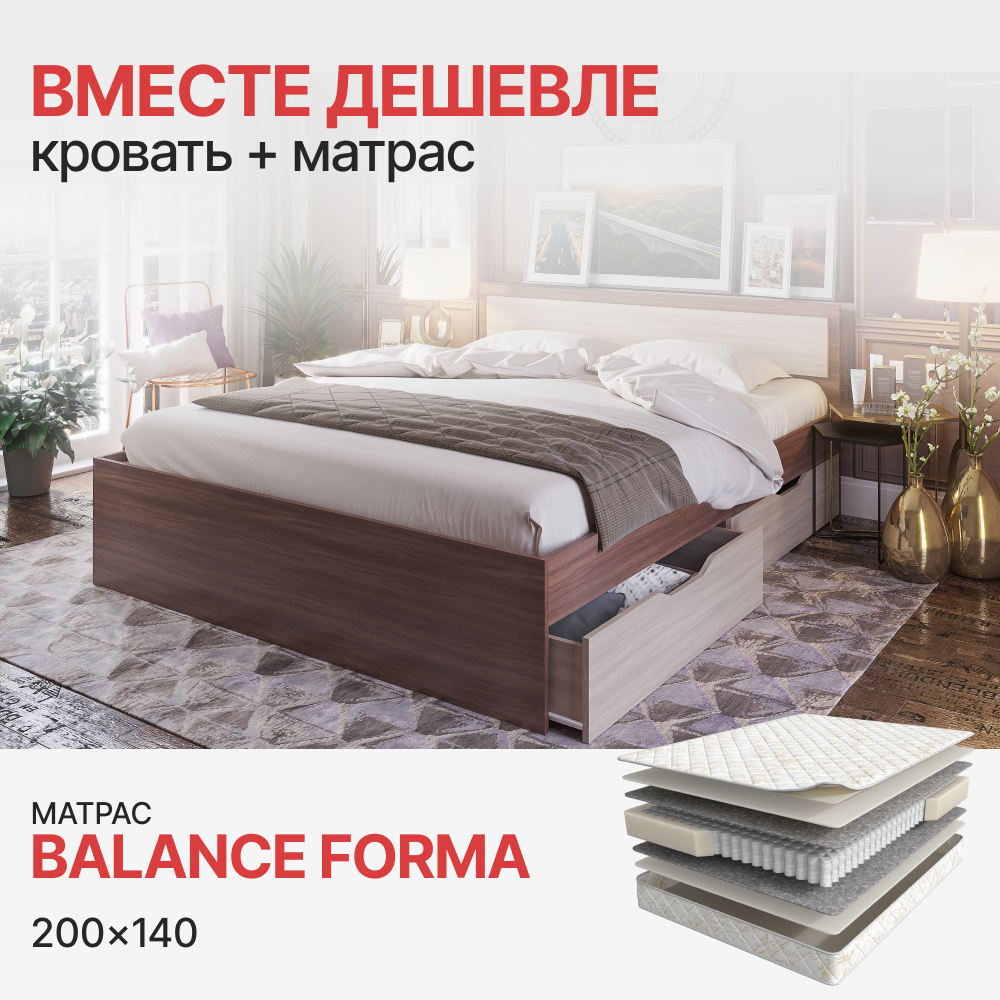 Комплект Кровать Гармония КР-605 с ящиками + Матрас Balance Forma (1400*2000) по цене 26 400 руб. от производителя АСКОНА МФ.