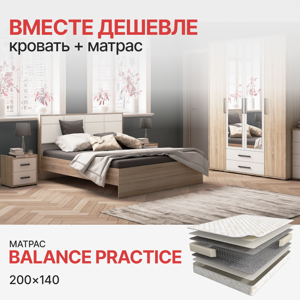Смотрите фотографии Комплект Кровать Соната 1,4м + Матрас Balance Practice (1400*2000), характеристики и отзывы покупателей.