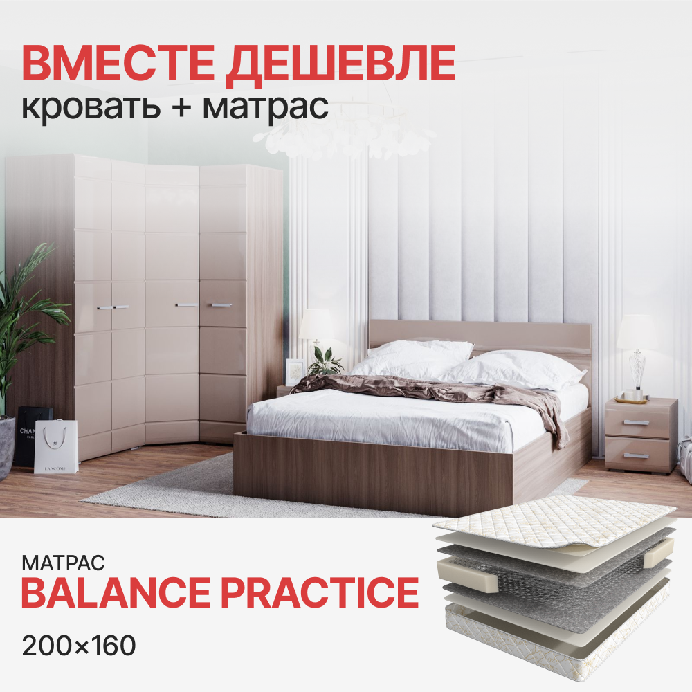 Комплект Кровать Вегас 1,6м + Матрас Balance Practice (1600*2000) по цене 25 940 руб. от производителя АСКОНА МФ.