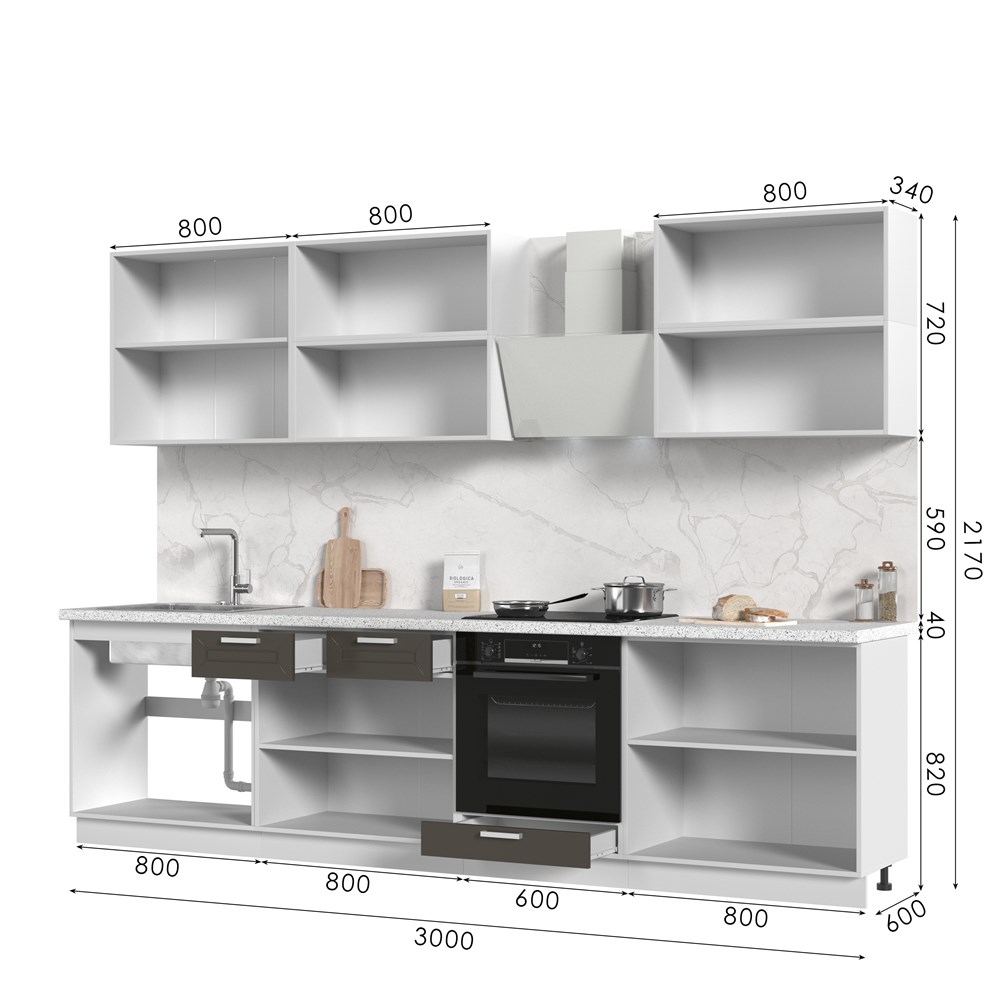 Кухонный гарнитур без столешницы Альфа 300см СТМ по цене 42 470 руб. от производителя Стенд-Мебель МФ.