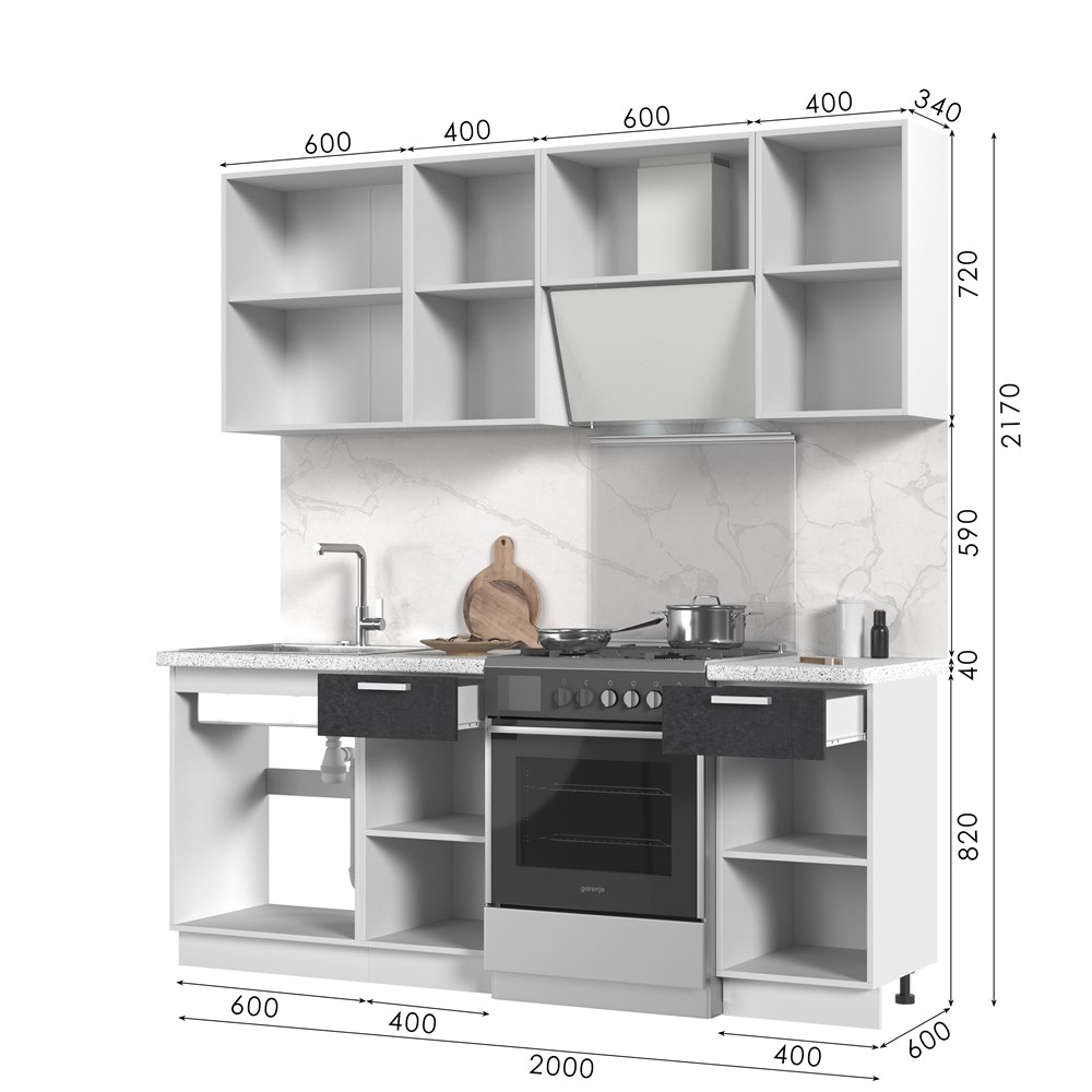 Кухонный гарнитур без столешницы Бетоны 200см СТМ по цене 27 210 руб. от производителя Стенд-Мебель МФ.