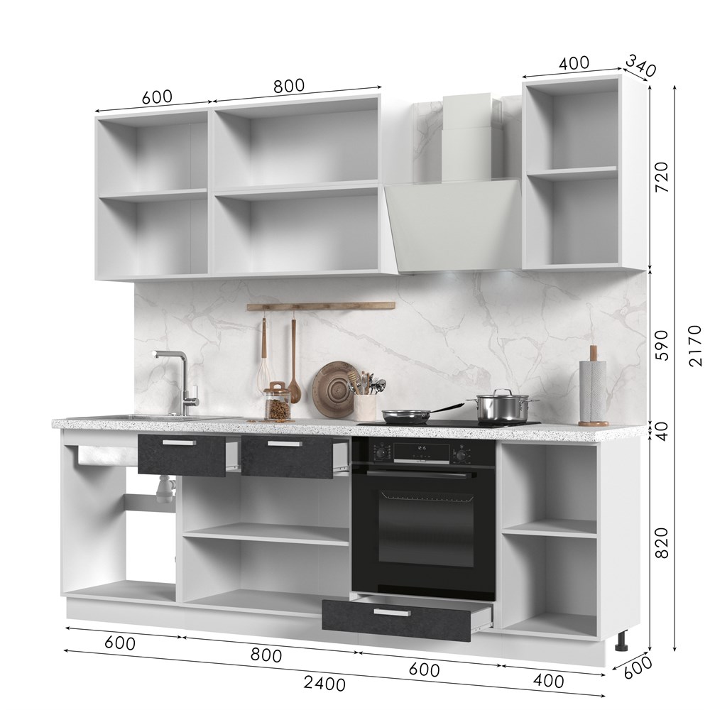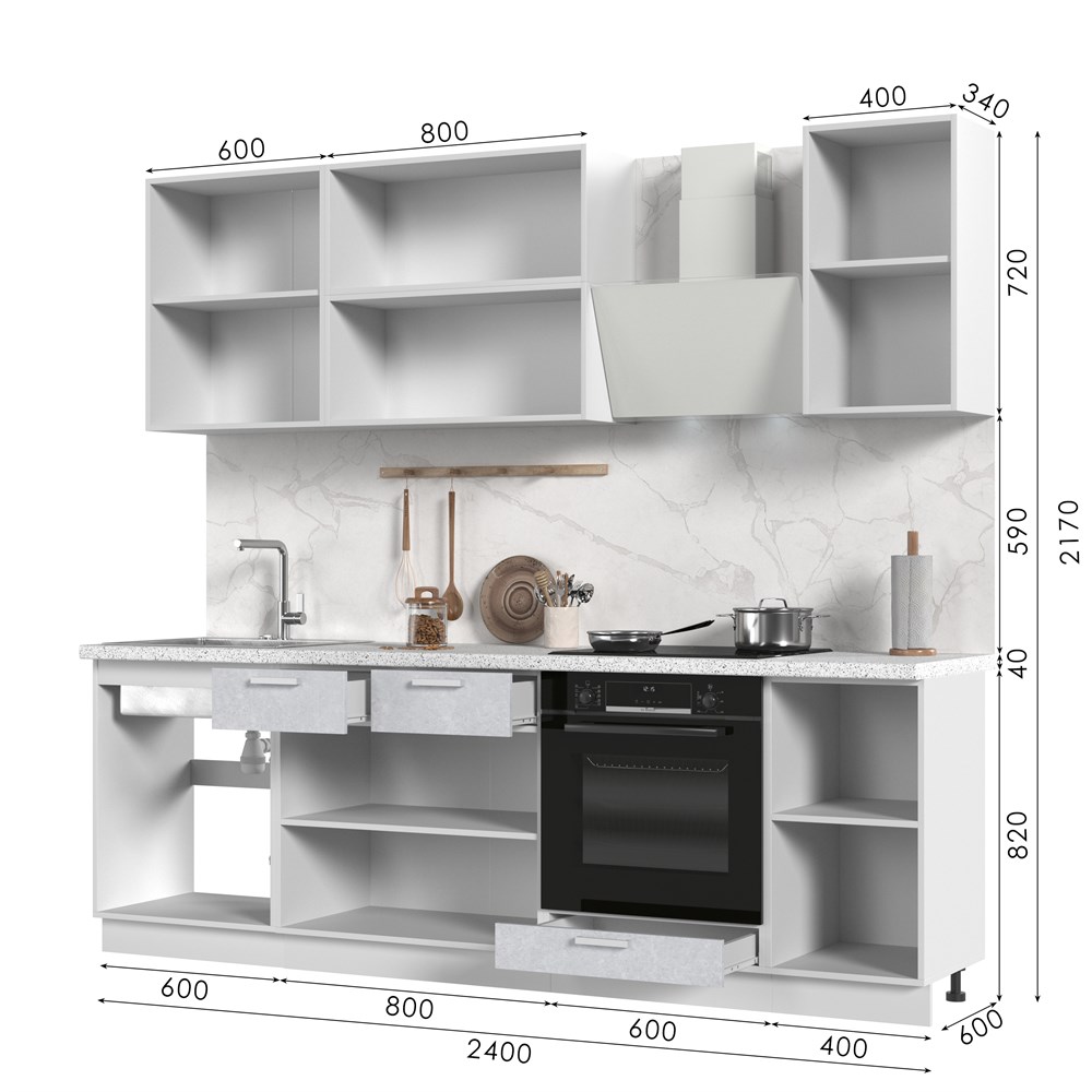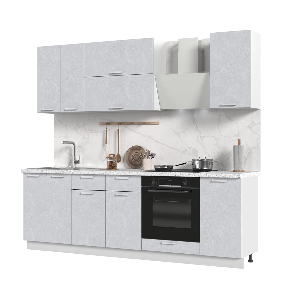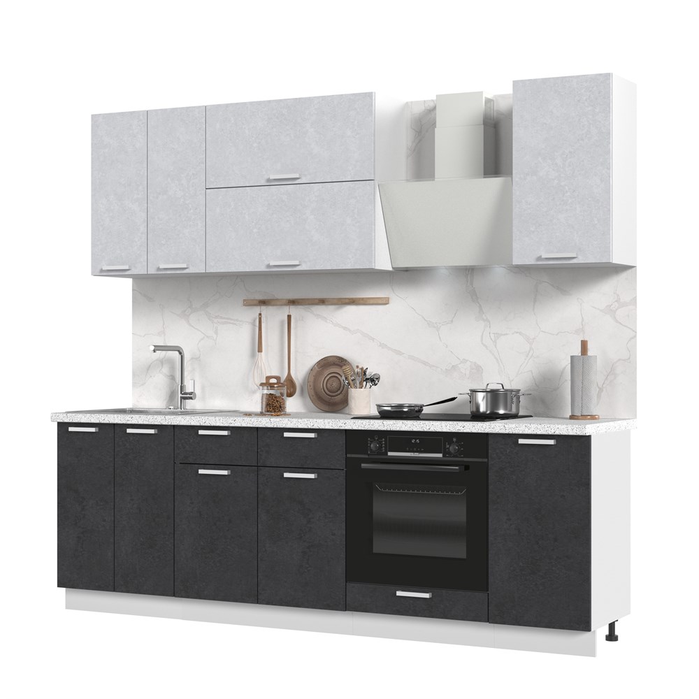 Кухонный гарнитур не комплектуется: столешницей, стеновой панелью, бытовой техникой и мойкой. Кухонный гарнитур без столешницы Бетоны 240см СТМ по цене 33 900 руб. от производителя Стенд-Мебель МФ.