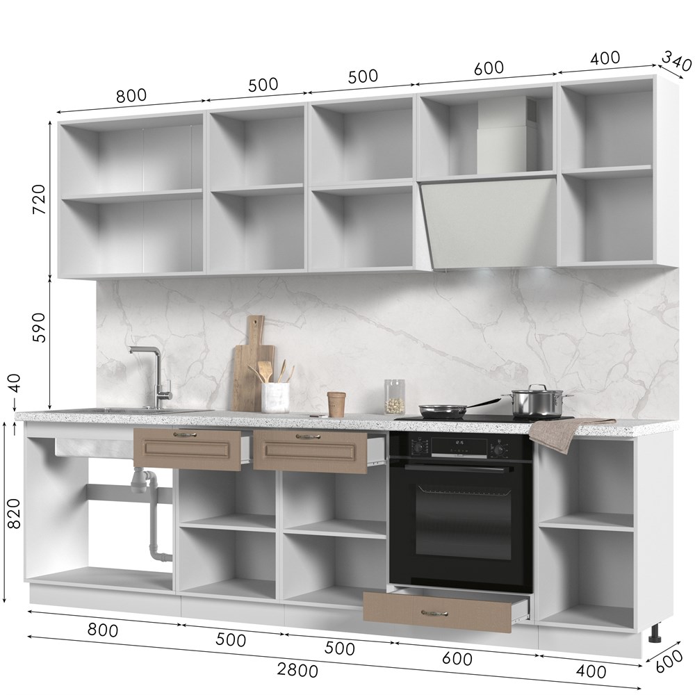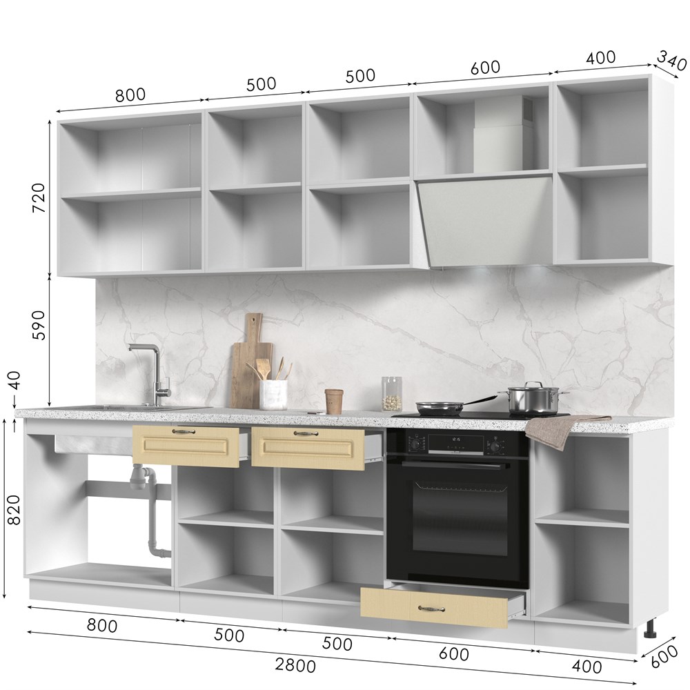 Кухонный гарнитур без столешницы Модена 280см СТМ по цене 43 970 руб. от производителя Стенд-Мебель МФ.