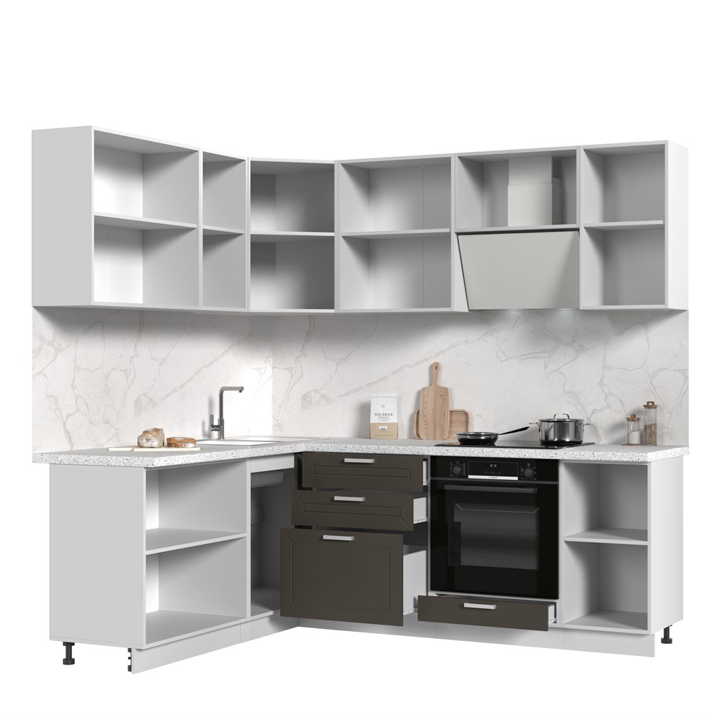 Смотрите фотографии Кухонный гарнитур угловой без столешницы Альфа 180х220см СТМ, характеристики и отзывы покупателей.