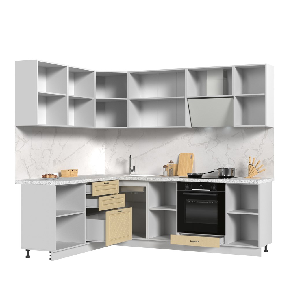 Смотрите фотографии Кухонный гарнитур угловой без столешницы Модена 180х240см СТМ, характеристики и отзывы покупателей.