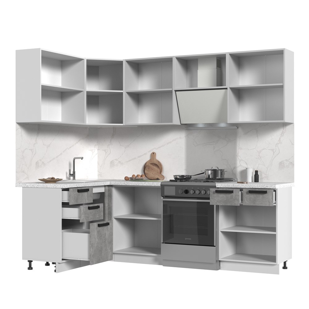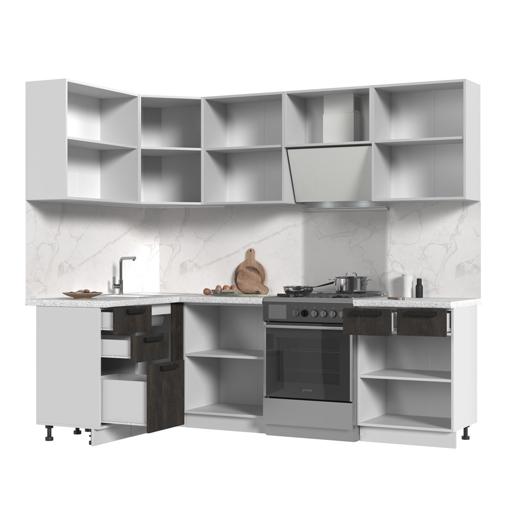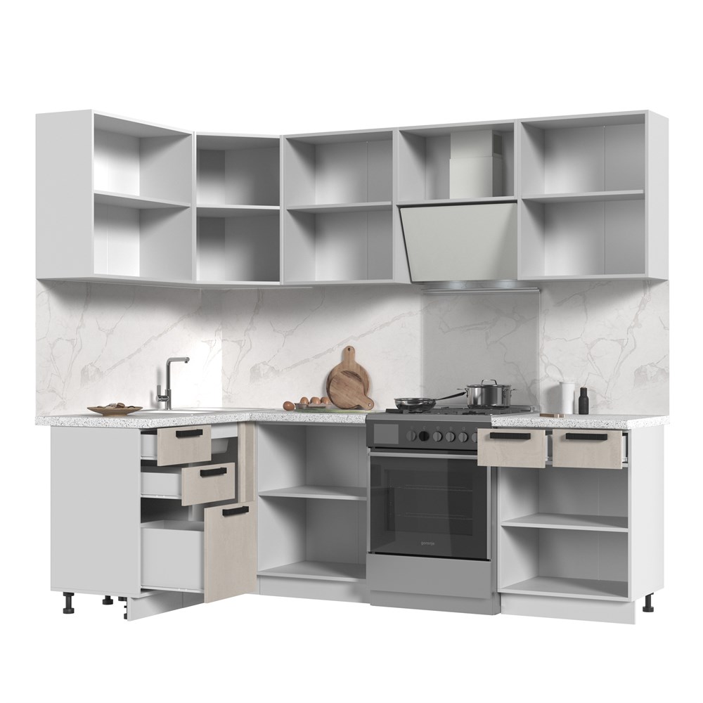 Кухонный гарнитур угловой без столешницы Пасаденна 140х180см СТМ по цене 39 780 руб. от производителя Стенд-Мебель МФ.