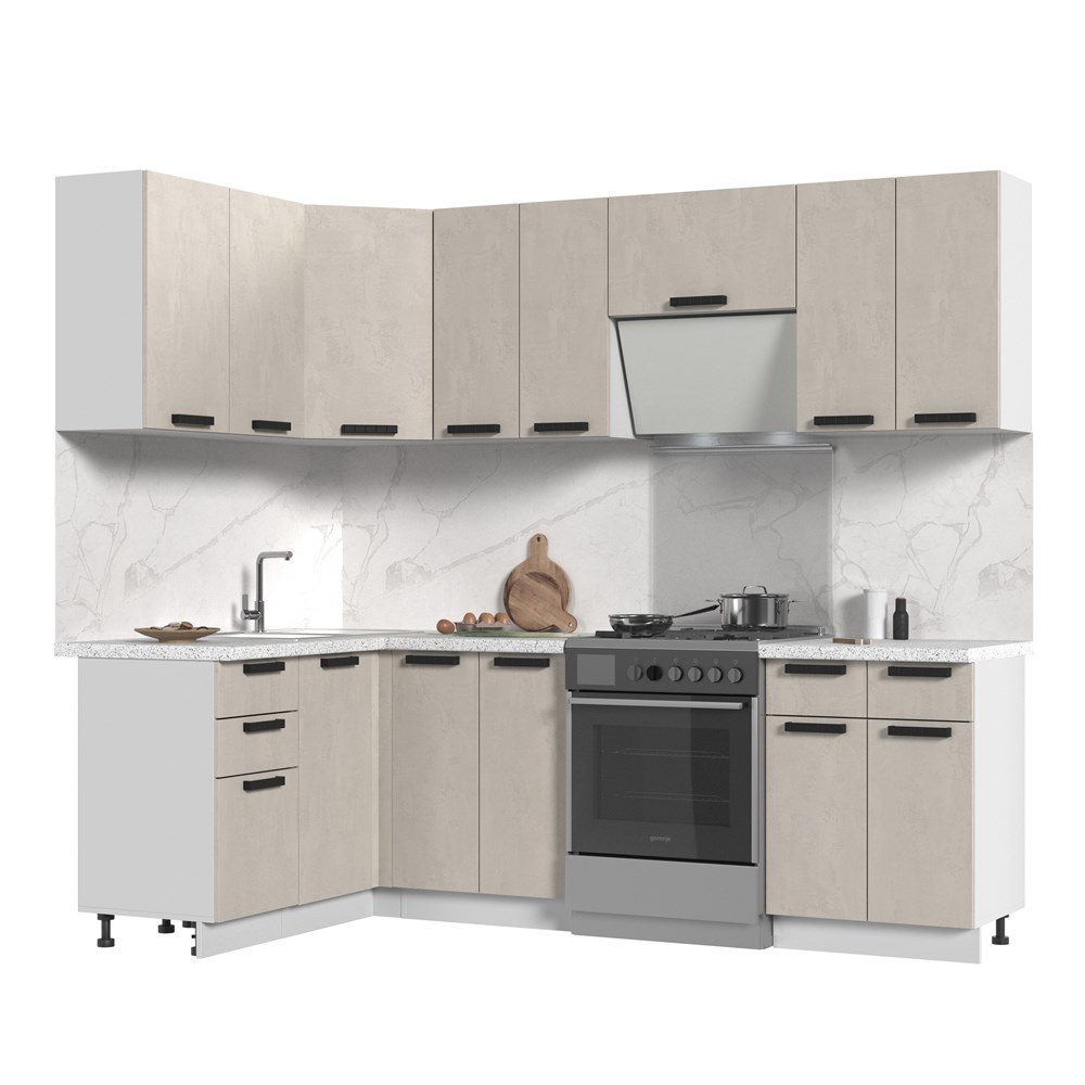 Смотрите фотографии Кухонный гарнитур угловой без столешницы Пасаденна 140х180см СТМ, характеристики и отзывы покупателей.