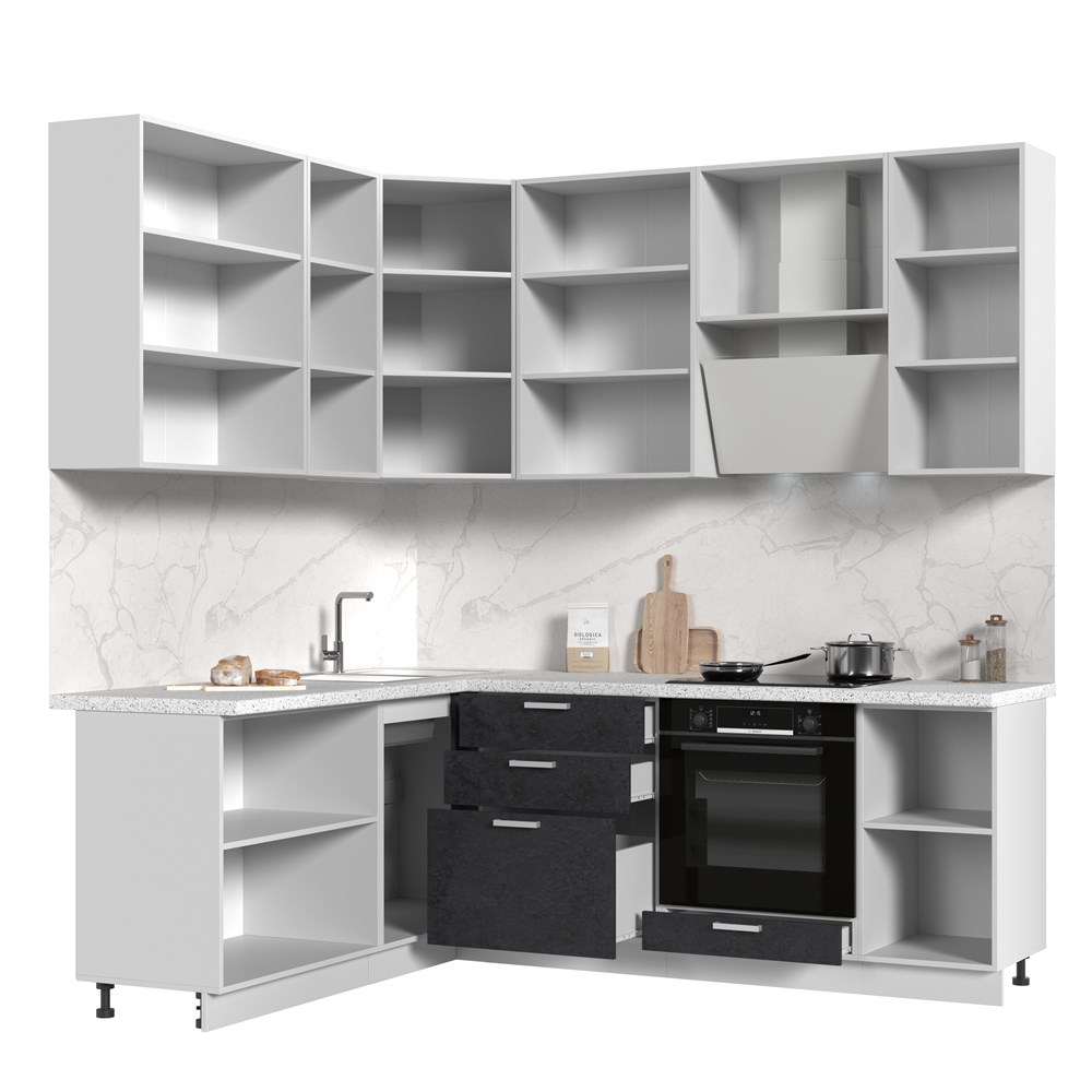 Смотрите фотографии Кухонный гарнитур угловой высокий без столешницы Бетоны 180х220см h=2370мм СТМ, характеристики и отзывы покупателей.