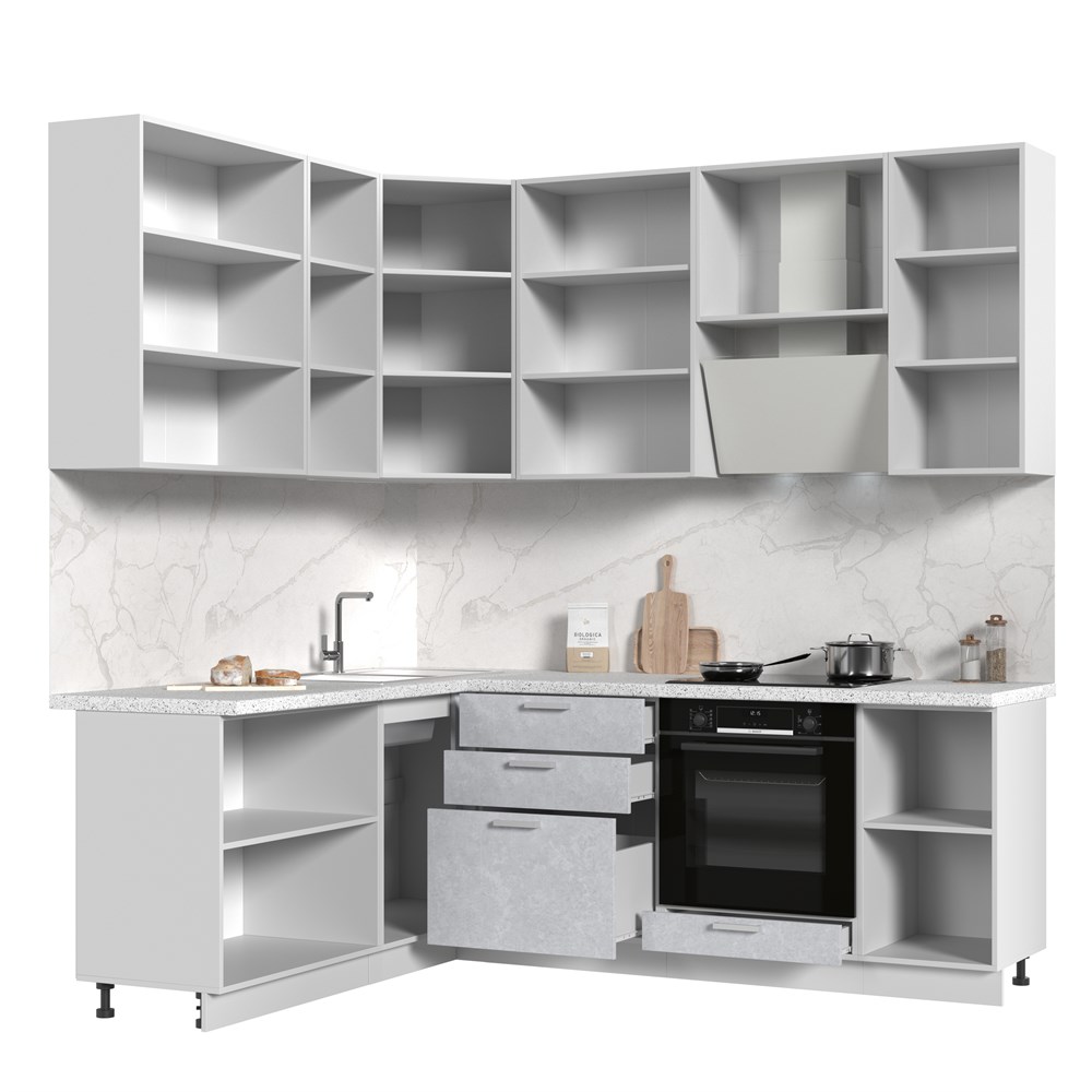 Кухонный гарнитур угловой высокий без столешницы Бетоны 180х220см h=2370мм СТМ по цене 54 140 руб. от производителя Стенд-Мебель МФ.