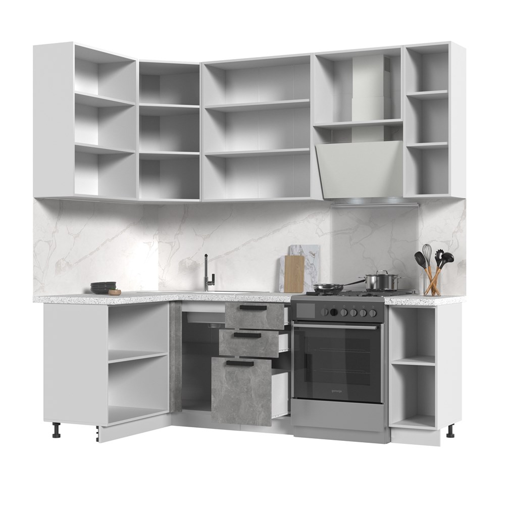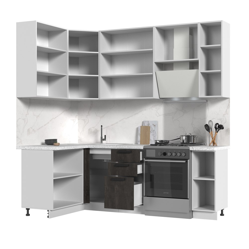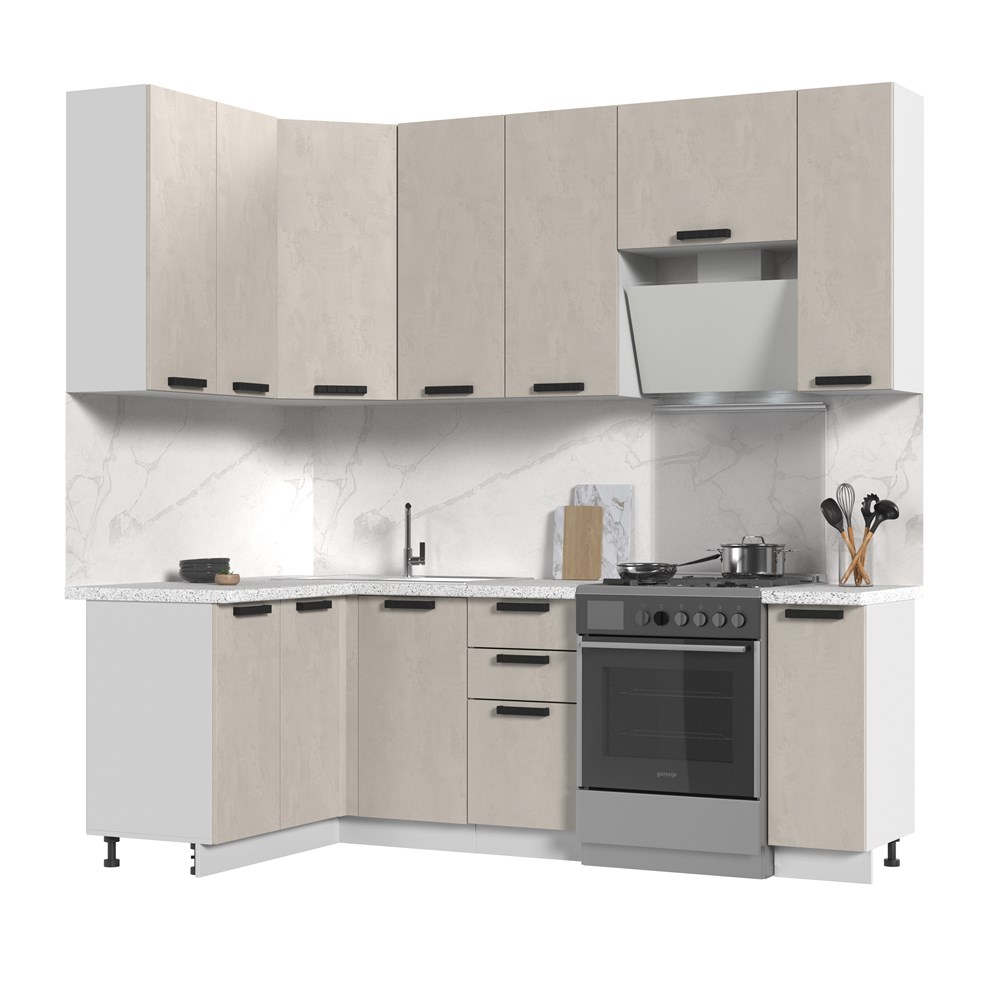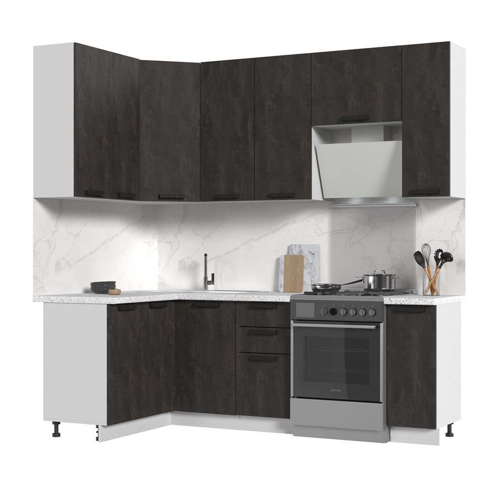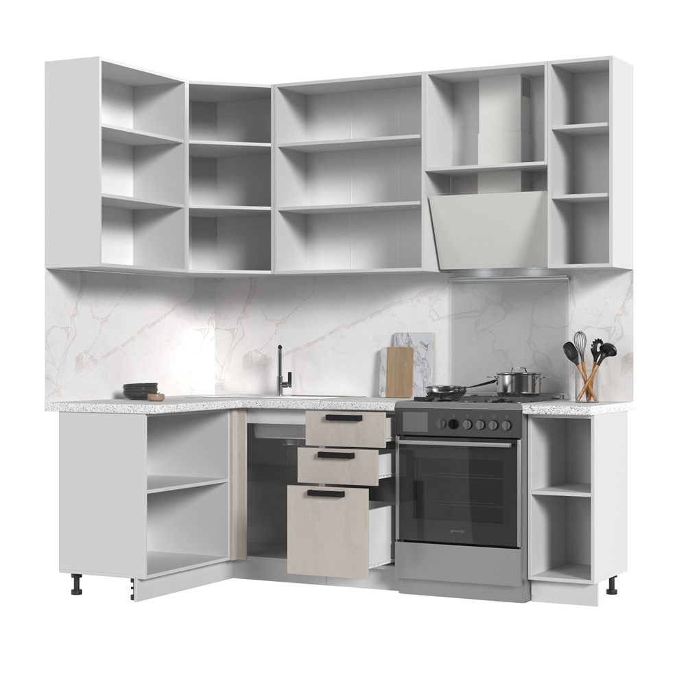 Кухонный гарнитур не комплектуется: столешницей, стеновой панелью, бытовой техникой и мойкой. Кухонный гарнитур угловой высокий без столешницы Пасаденна 130х170см h=2370 по цене 39 860 руб. от производителя Стенд-Мебель МФ.