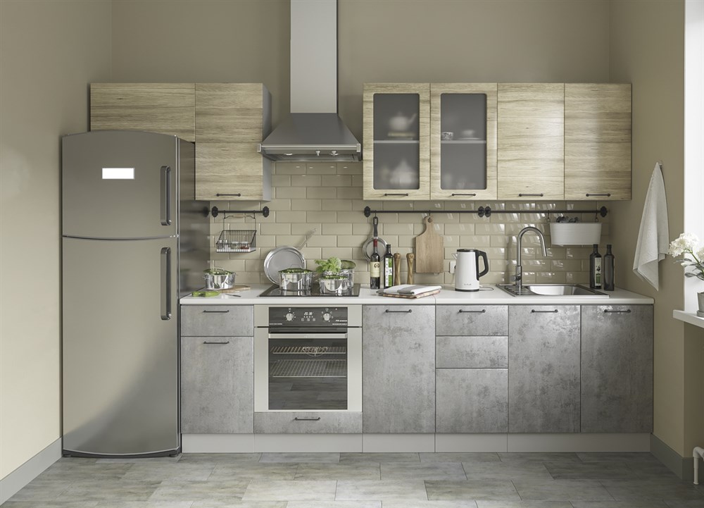Смотрите фотографии Лофт Кухонный гарнитур 3,2м Дуб майский/Бетон светлый ДСВ, характеристики и отзывы покупателей.
