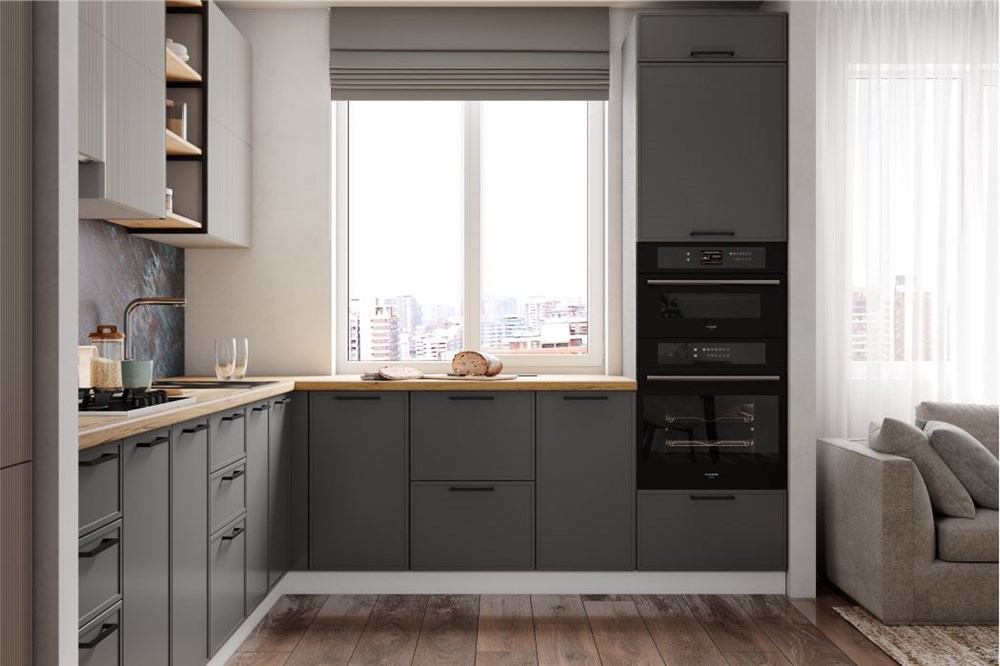 Марта/Мелисса Кухонный гарнитур угловой 1,0х3,2х2,55м Графит Скин/Бежевый Скин ДСВ по цене 11 390 руб. от производителя ДСВ МФ.