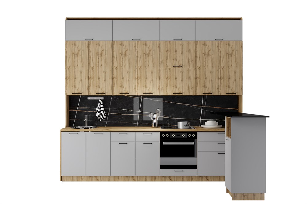 Мемфис/Хелмер Кухонный гарнитур 3,0м №2 h-2700 с барной стойкой СМ по цене 12 110 руб. от производителя Сурская Мебель МФ.